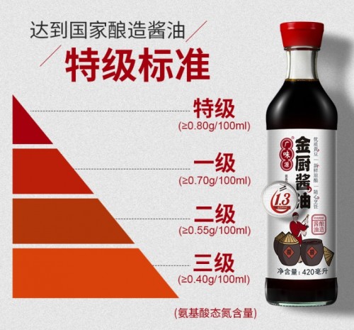 數(shù)據(jù)顯示,“金廚醬油”氨基酸態(tài)氮含量≥1.3g/100ml,遠遠高于國家醬油釀造標準的0.8g/100ml特級標準。從側面也說明金廚醬油的“鮮醇”度遠超國家標準,是地地道道的頭道新鮮原釀。而這些,完全滿足了廣府人對高鮮醬油的高需求。