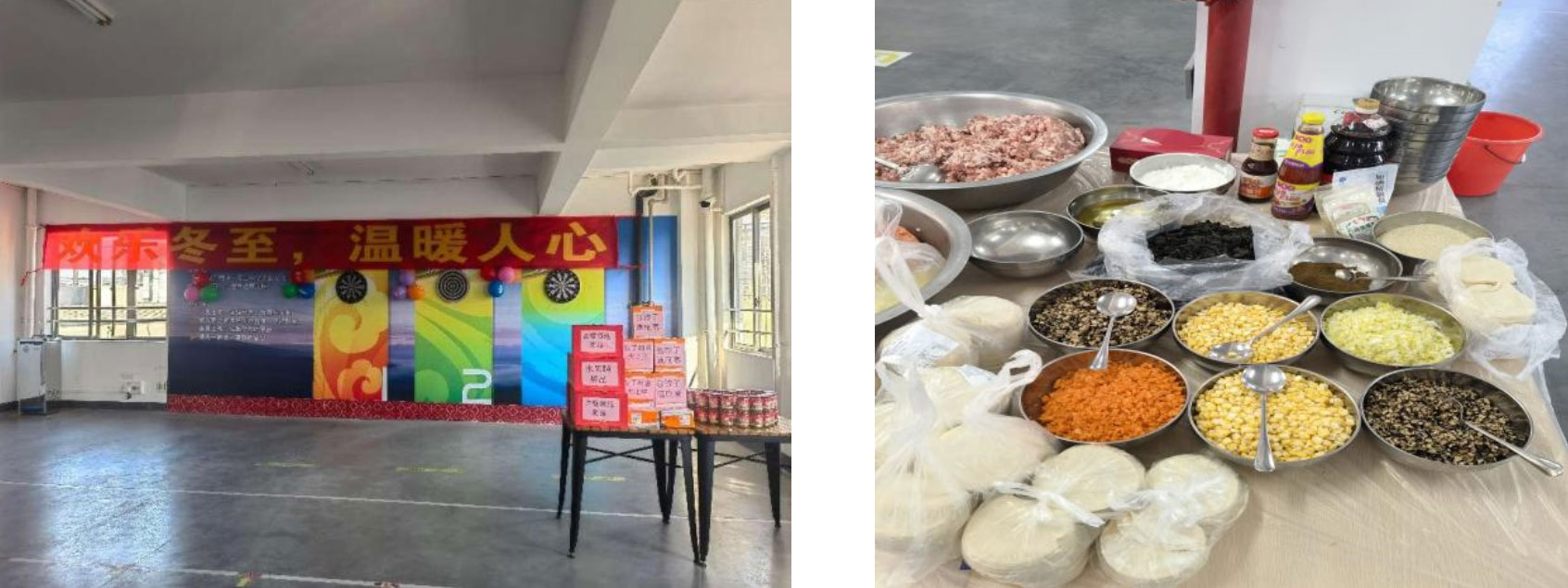 13:30,在各部門(mén)的鼎力配合下,員工文體中心活動(dòng)現(xiàn)場(chǎng)布置完畢,行政部為冬至活動(dòng)準(zhǔn)備了豐富的食材,包括:新鮮餃子皮、精選肉餡和各式蔬菜,還有公司的調(diào)味品等等,讓每位參與活動(dòng)的員工都能親手做出自己喜歡的味道。