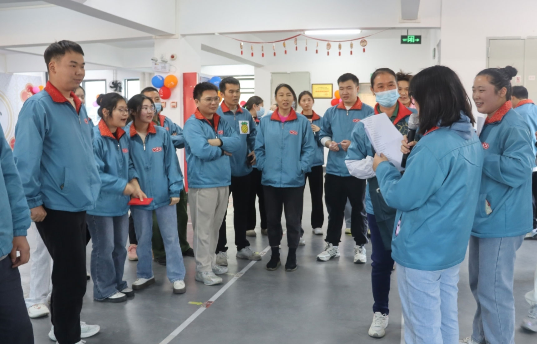 14:25,所有參與活動(dòng)的參賽隊(duì)伍、領(lǐng)導(dǎo)和觀(guān)眾到達(dá)現(xiàn)場(chǎng),14:30主持人宣布冬至活動(dòng)開(kāi)始。行政部施華經(jīng)理作開(kāi)場(chǎng)致辭,并祝大家冬至快樂(lè)。接著,主持人介紹了本次活動(dòng)的具體流程,一共有6項(xiàng)活動(dòng):團(tuán)隊(duì)賽(包餃子速度比賽,餃子創(chuàng)意大比拼,占鋸領(lǐng)地、水果蹲),個(gè)人賽(歇后語(yǔ)猜猜猜、踩氣球游戲)等。